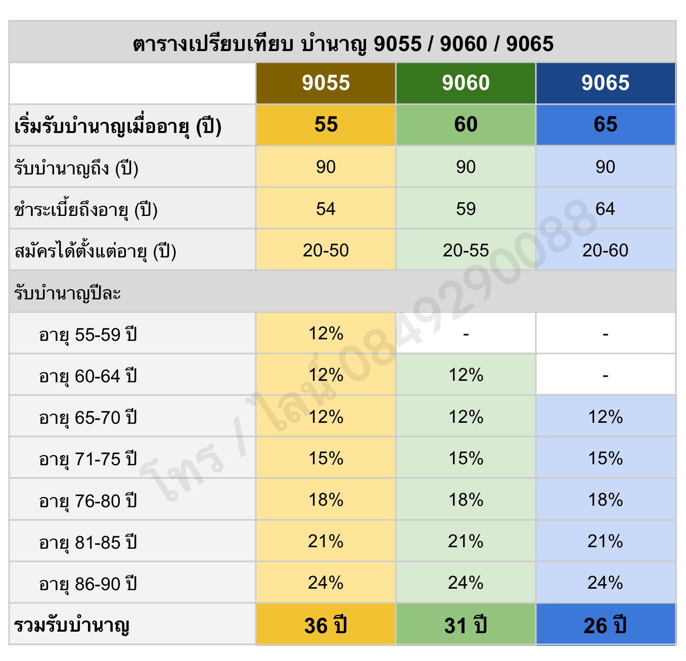 - เลข 2 ตัวด้านหลัง (55, 60, 65) คืออายุที่เริ่มรับเงินบำนาญได้